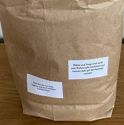 Dinkelmehl Typ 630. Der Dinkel für dieses Mehl wurde in Farschweiler angebaut und in einer Mühle in der Pfalz vermahlen.